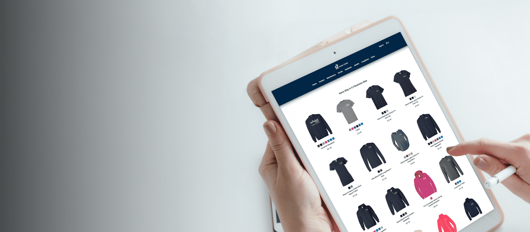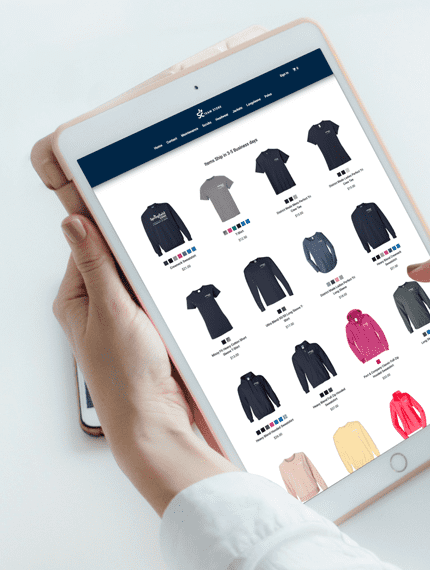 Choose your store type, upload your logo and apparel items. and launch! Your store is live within days, supported with expert setup in under 72 hours.